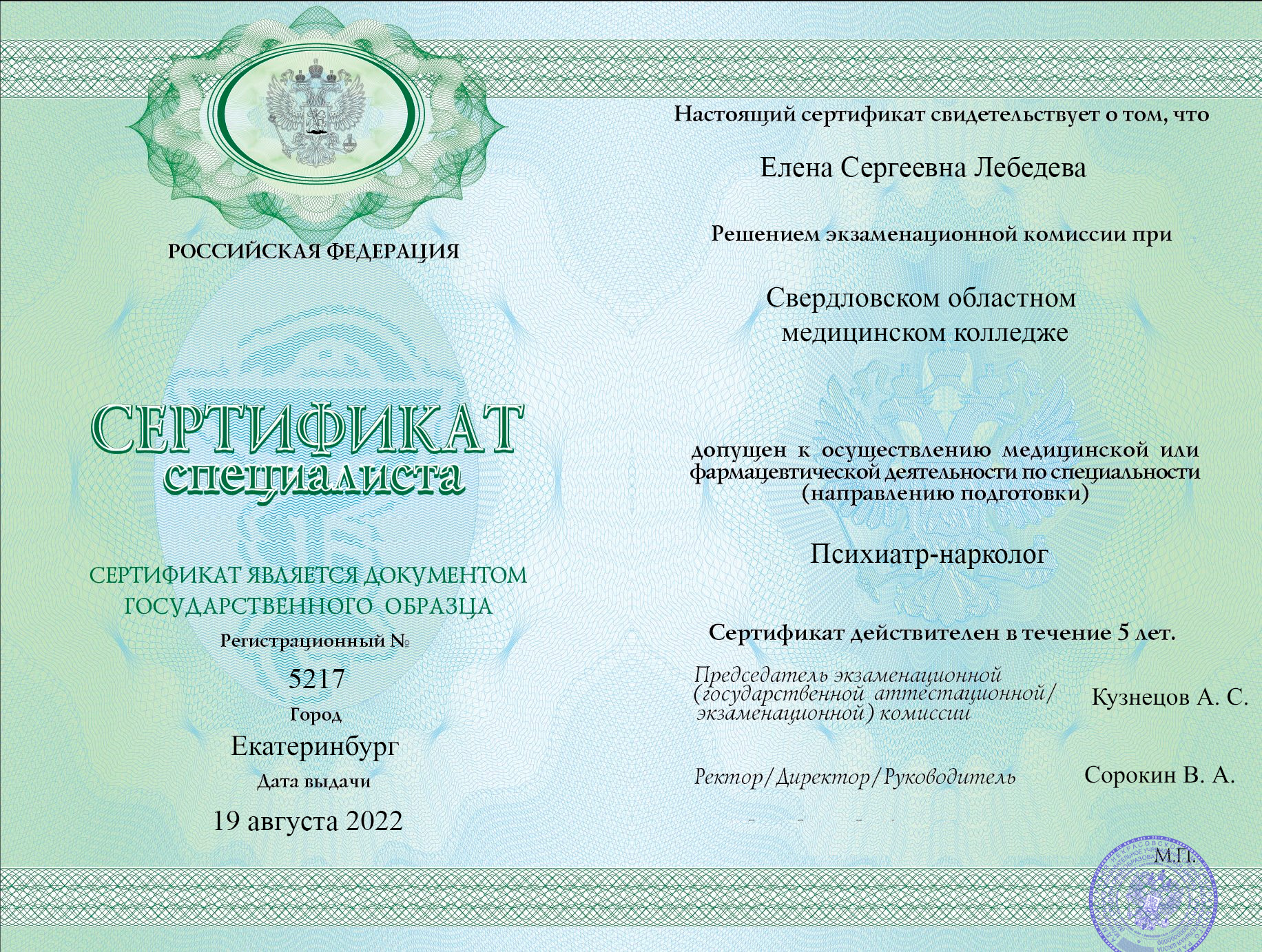 Елена Сергеевна Лебедева врач нарколог клиники доктора Стукаловой в Шире